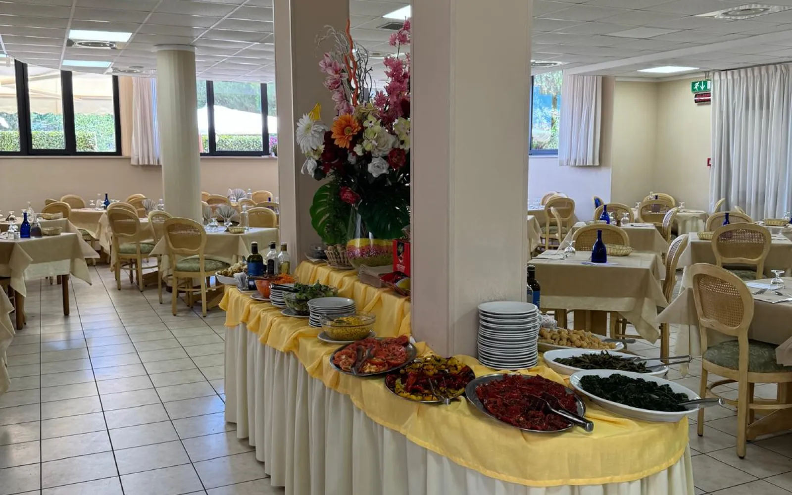 All’Albergo San Gabriele il ristorante è interno e propone un menù composto da 5 primi piatti e 5 secondi. Cucina italiana e tipicità del territorio abruzzese sono al centro dell’offerta, che vede protagoniste sia preparazioni a base di carne che di pesce. Sempre invitante il ricco buffet, con una proposta di verdure e contorni che seguono la stagione.