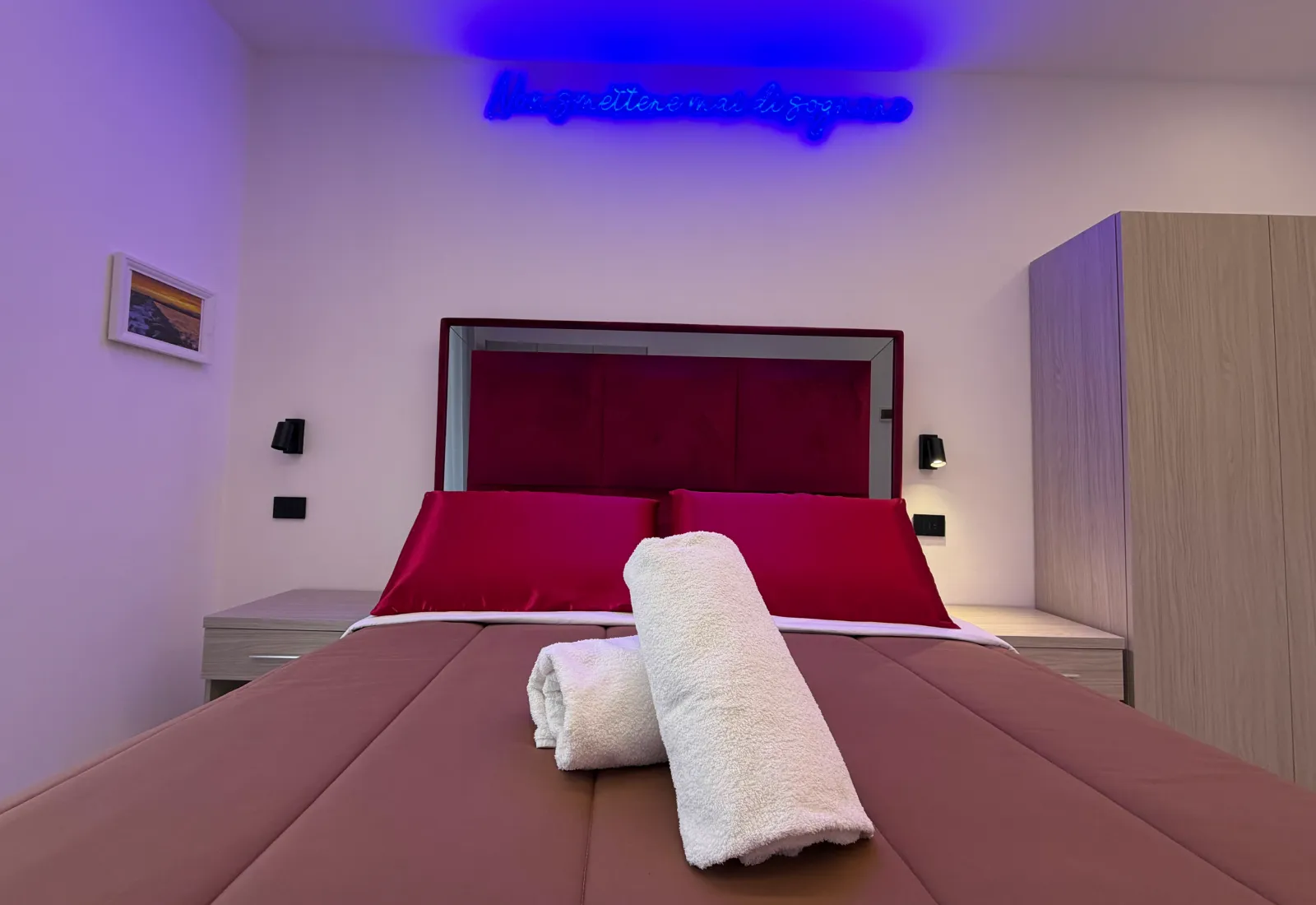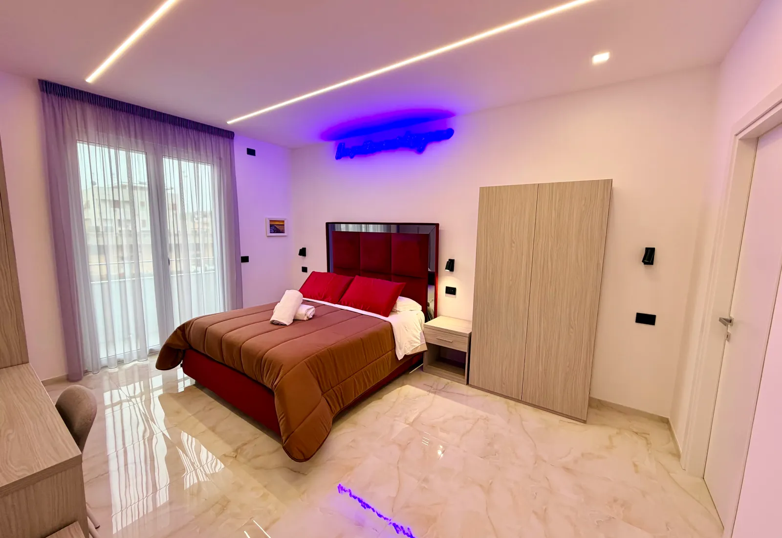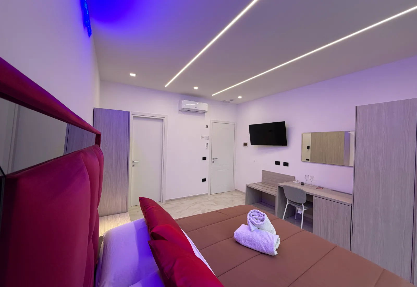 01. Matrimoniale LuxuryLe camere matrimoniali Luxury sono ideali per coppie in cerca di comfort e tranquillità. Spaziose, luminose e dotate di balcone, uniscono arredi eleganti e servizi completi per garantire un soggiorno rilassante e piacevole. |