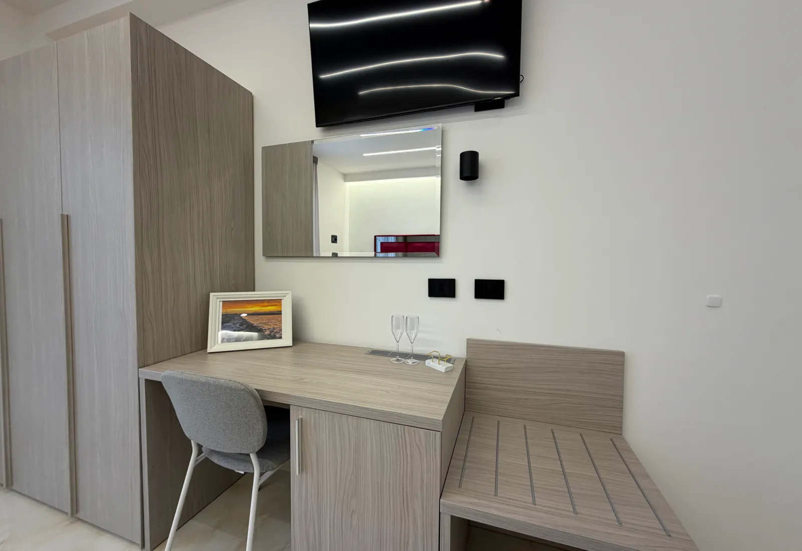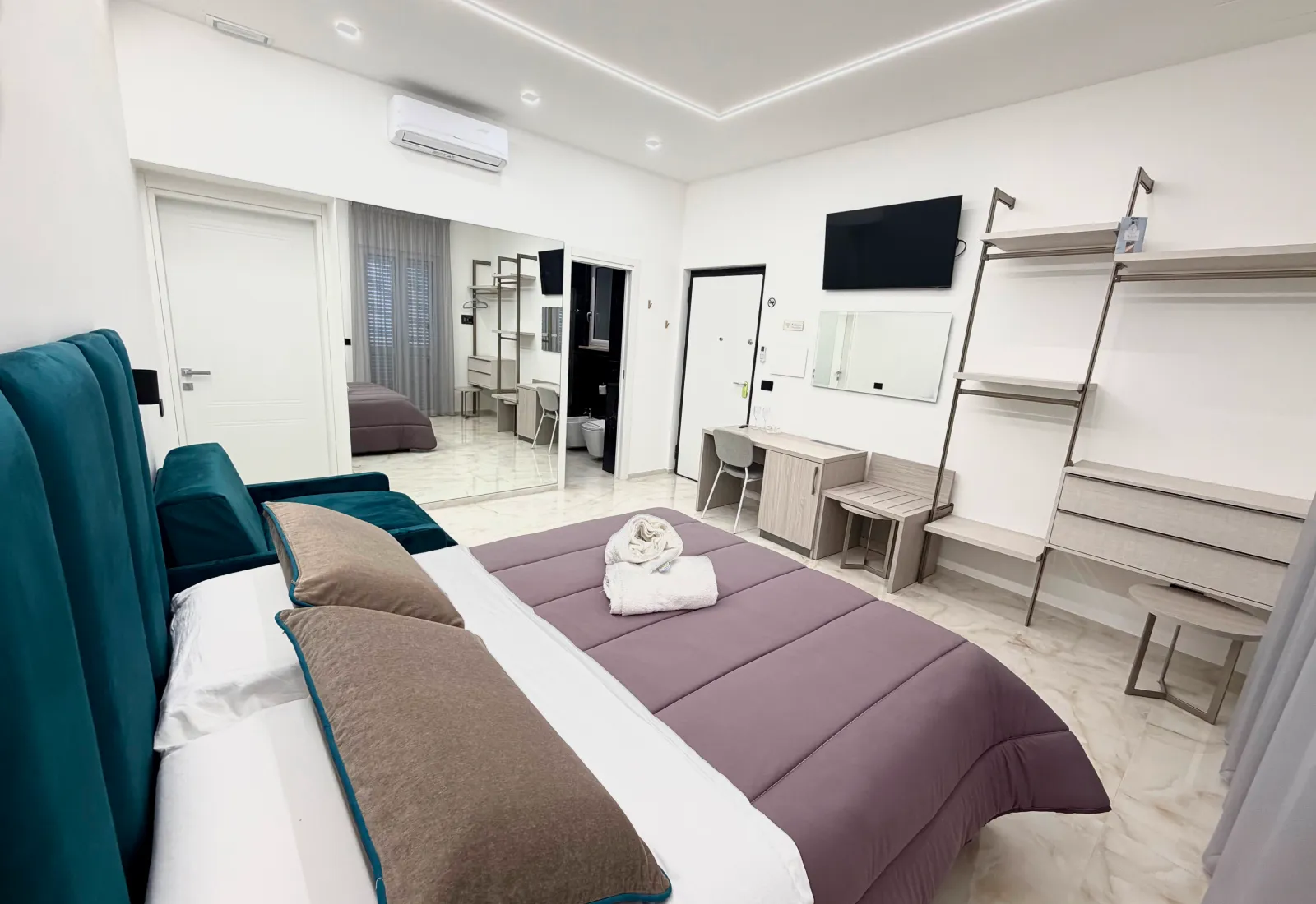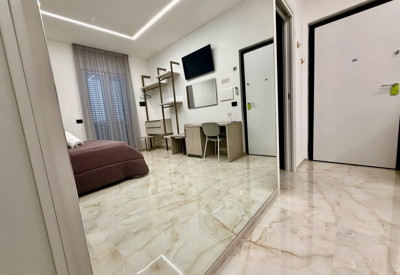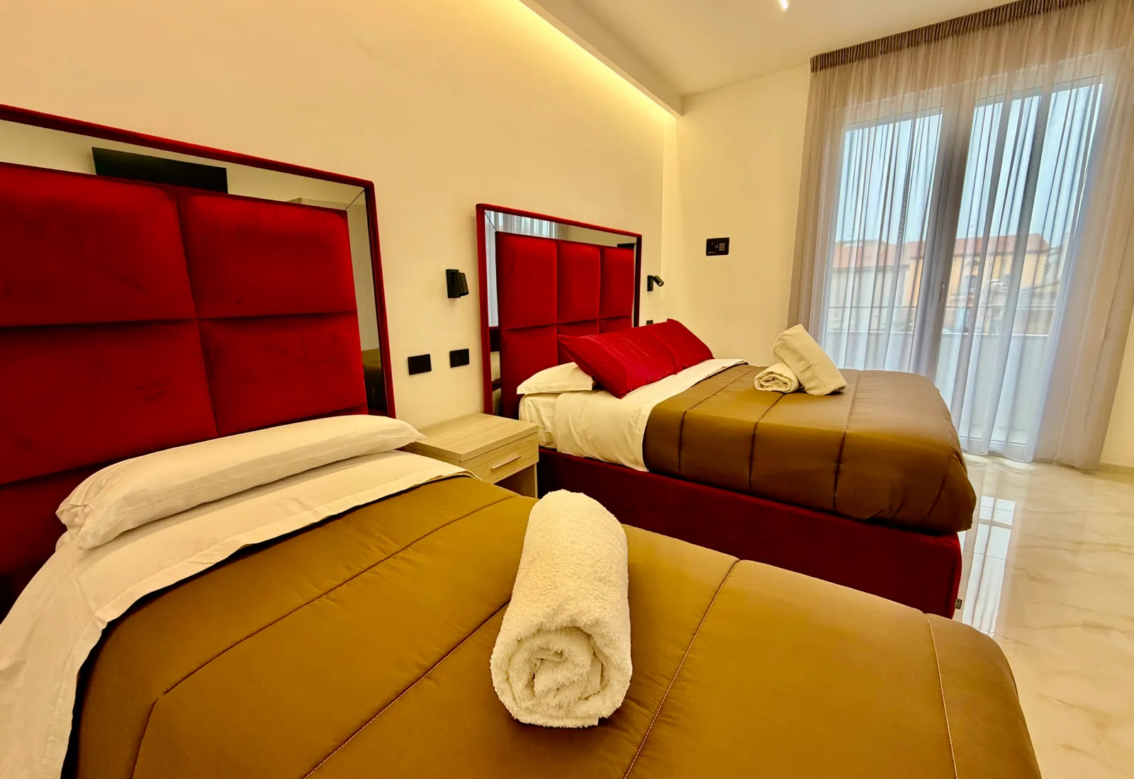01. Matrimoniale LuxuryLe camere matrimoniali Luxury sono ideali per coppie in cerca di comfort e tranquillità. Spaziose, luminose e dotate di balcone, uniscono arredi eleganti e servizi completi per garantire un soggiorno rilassante e piacevole. |