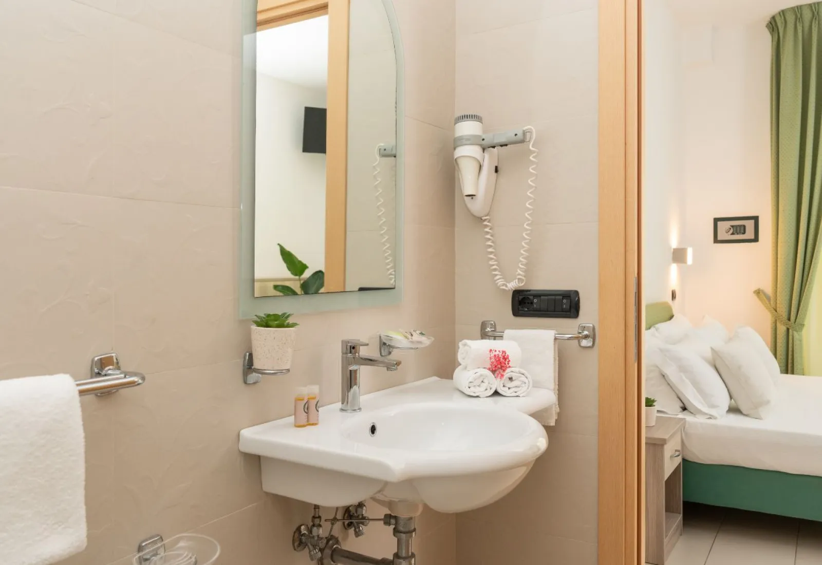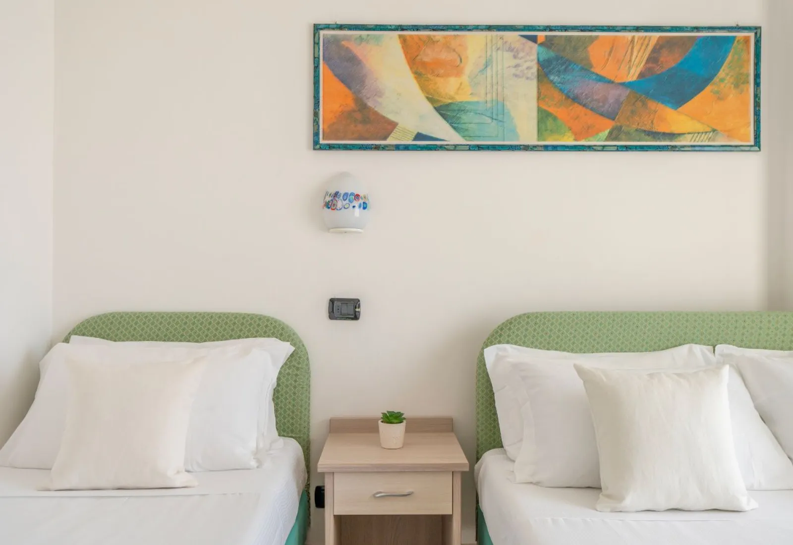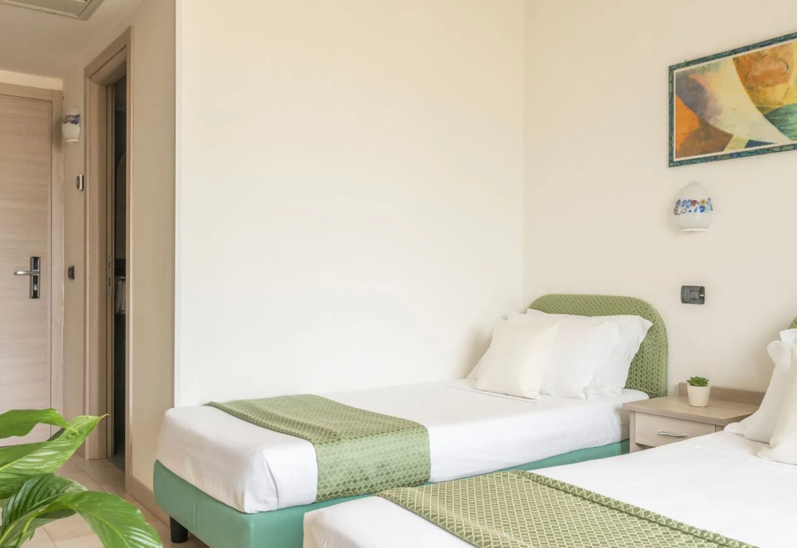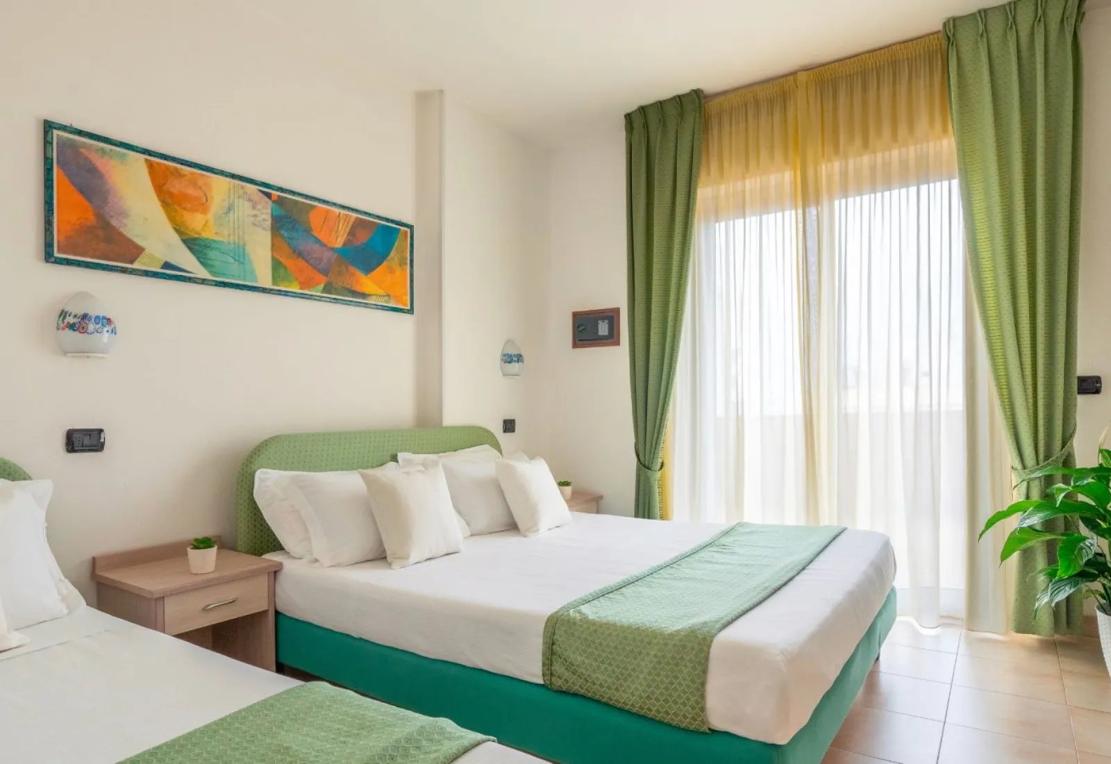 Le camere da 2 a 4 persone con letto matrimoniale e/o uno o due letti singoli sono confortevoli e luminose, moderne e funzionali. L’ambiente è intimo e accogliente, perfetto per ospitare anche i più piccini con culle e tutti i comfort necessari.