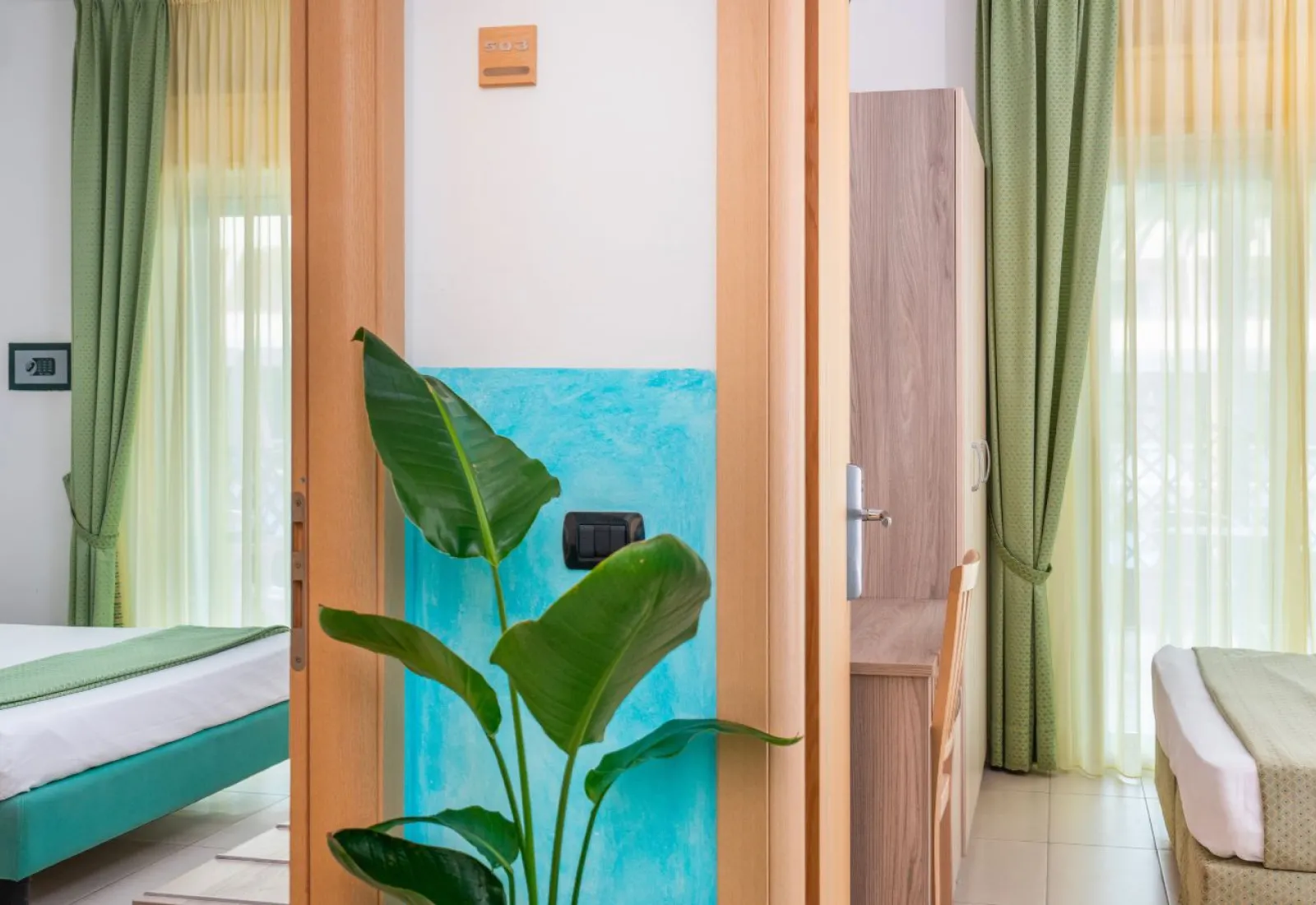 Le camere family sono la soluzione perfetta per chi viaggia in famiglia o con amici: dispongono di due ambienti divisi e comunicanti, ognuno con un bagno privato e possono ospitare da 4 a 6 persone. Situate nella Dependance, sono moderne, spaziose e confortevoli, ispirate ai colori del mare.