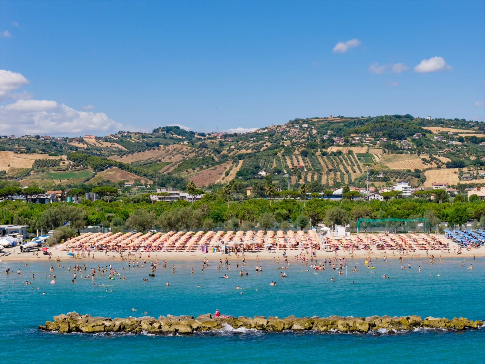 Il Riva Nuova Camping Village di Martinsicuro si affaccia sul lungomare e offre accesso diretto alla spiaggia privata: sabbia fine con fondale basso, ideale per i bambini. La spiaggia è attrezzata con ombrelloni e lettini, oltre a servizi dedicati per garantire comfort e sicurezza a tutta la famiglia. Immerso nel verde, dispone di una piscina da 1800 mq con area baby dotata di scivoli, giochi d’acqua e una zona relax con idromassaggio e solarium.