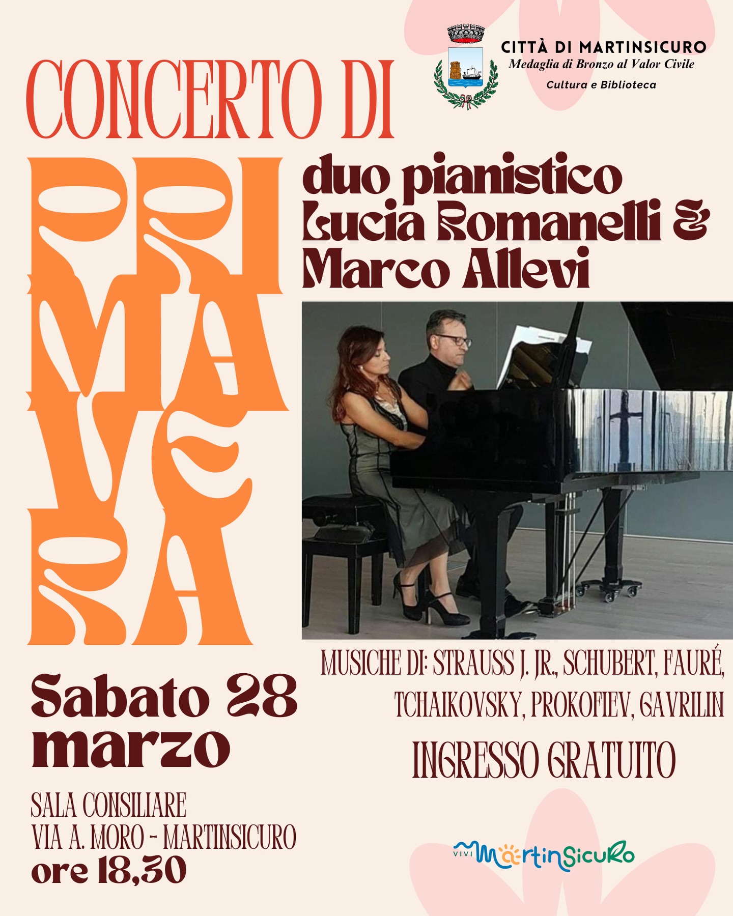 Il Comune di Martinsicuro è lieto di invitarvi a una serata di grande musica con il duo pianistico Lucia Romanelli & Marco Allevi.